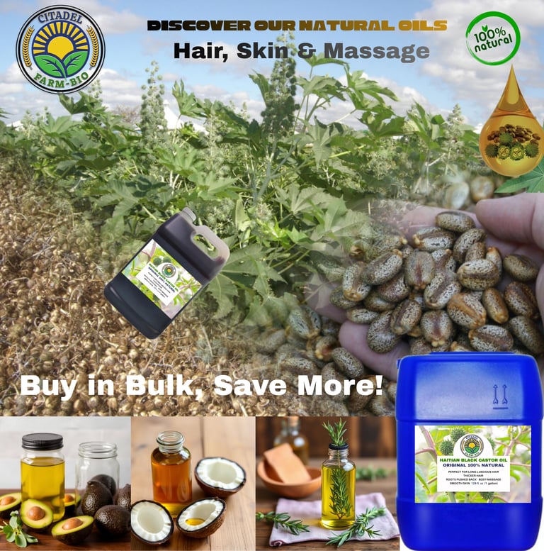 CITADEL FARM-BIO offers high-quality Haitian castor oil (Maskriti) in bulk for wholesale. Our pure, organic oil is ideal for hair care, skin care, and body massage, ensuring quantity and quality at competitive prices.