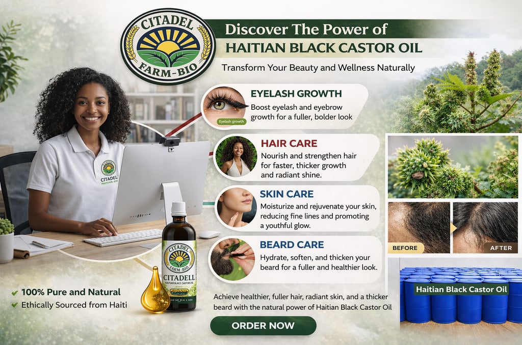 CITADEL FARM-BIO offers high-quality Haitian castor oil (Maskriti) in bulk for wholesale. Our pure, organic oil is ideal for hair care, skin care, and body massage, ensuring quantity and quality at competitive prices.